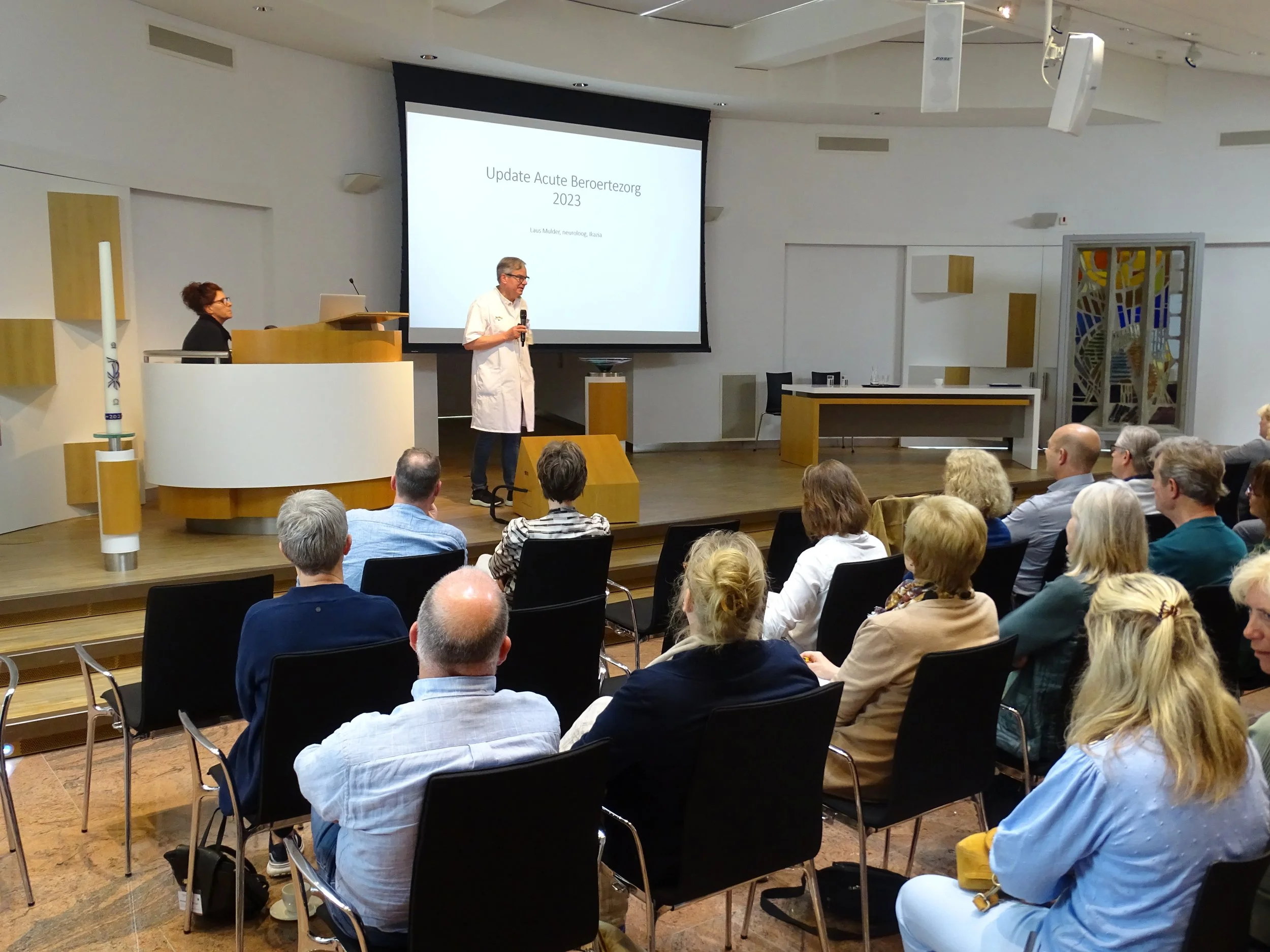 Op woensdag 10 mei 2023 vond de jaarlijkse themadag voor ervaren opleiders plaats in het Ikazia Ziekenhuis in Rotterdam. Het onderwerp ‘aandoeningen van hoofd en hals’ werd door diverse bevlogen specialisten van Ikazia uitgediept. De ziekenhuiskapel was een prachtige plek voor de plenaire lezing over CVA door ervaren neuroloog Laus Mulder, bijgestaan door Bianca Buijck, coördinator van de Rotterdam Stroke Service. Twee KNO-artsen verzorgden workshops over bloedneuzen, duizeligheid, stembandproblematiek en allergie. Een kaakchirurg lichtte de opleiders voor over mond- en slijmvliesafwijkingen en kaaktrauma’s. Twee oogartsen bespraken oogaandoeningen bij ouderen en laserbehandelingen. In de middagpauze verzorgde het Ikazia rondleidingen bij het eigen Klinisch Chemisch Lab en de ziekenhuiskeuken, waar opleiders informatie kregen over smaaksturing bij kankerpatiënten. Behalve huisartsopleiders waren ook stageopleiders aanwezig bij deze themadag, die door beide groepen zeer werd gewaardeerd.