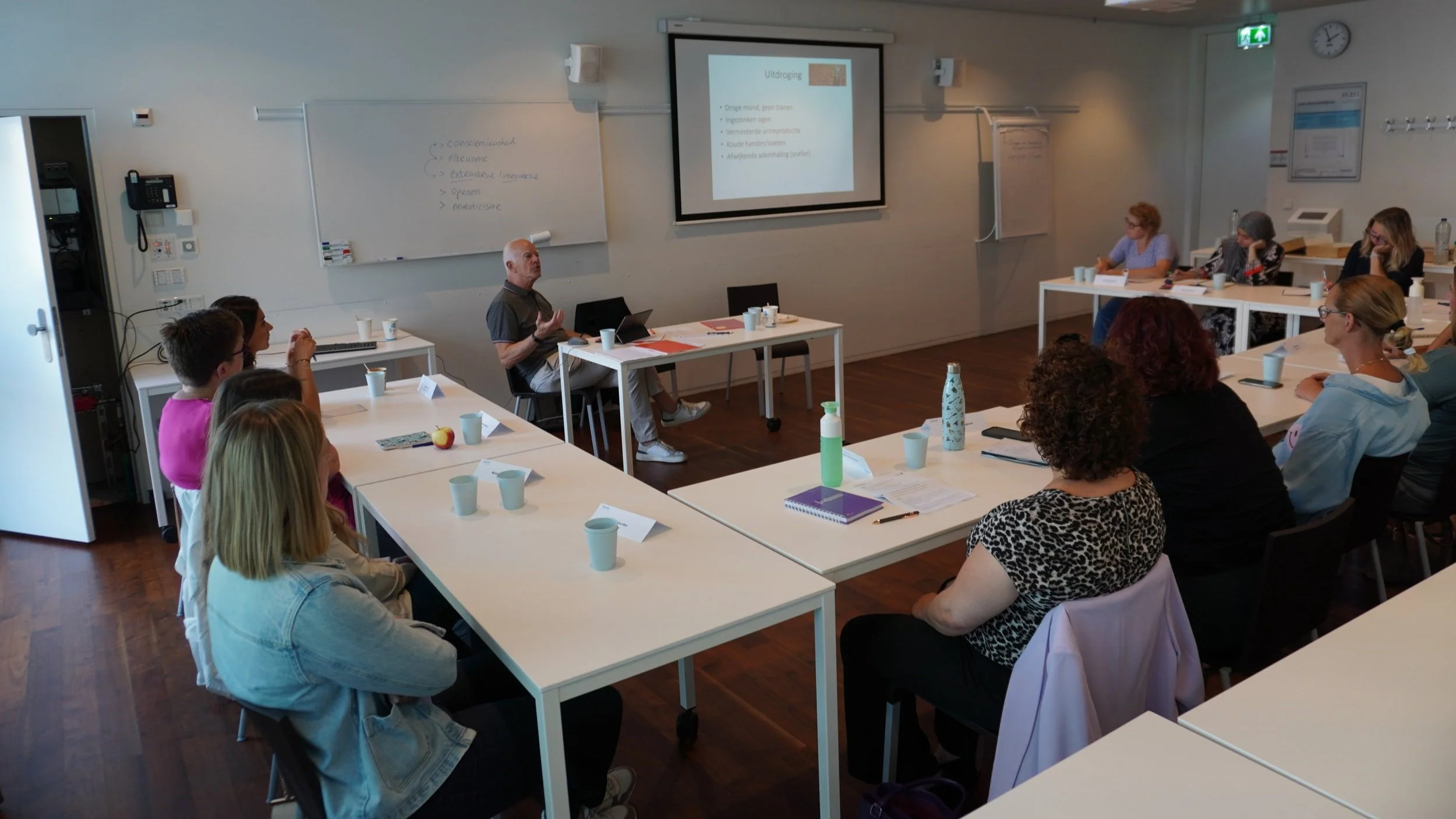 De ochtend bood een afwisseling van theorie en interactieve momenten, waarbij ook geoefend werd met casuïstiek, zoals ingebrachte problemen in de communicatie en de samenwerking. De twee gastdocenten probeerden vertrouwelijkheid te creëren en gaven hen handvatten voor het geven van feedback en de invulling van de rol bij de opleiding. Na een rondleiding over de afdeling stond in de middag een medisch programma centraal met het thema ‘kinderen met koorts’. De praktijkassistentes dachten interactief mee over hoe ze dingen oppakken: “Wat ga je doen? Wat ga je veranderen? Wat zou ertoe bij kunnen dragen je werk met nog meer plezier te doen?”.